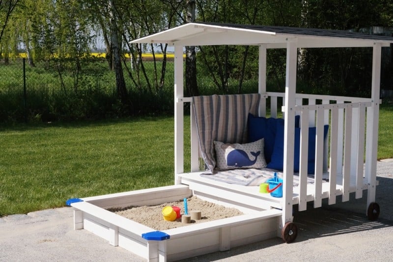 Jestem pod ogromnym wrażeniem tej piaskownicy, każde dziecko chciałoby ją mieć. Dobry pomysł aby ją pomalować na biało.