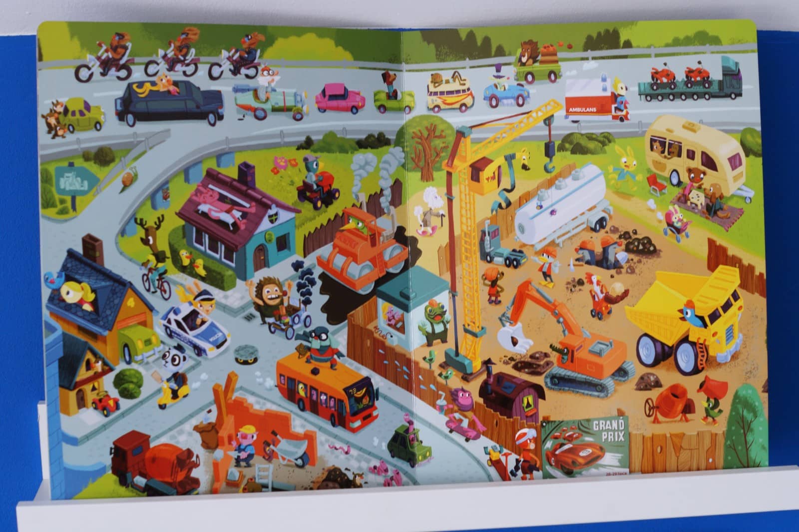 Auta, Maszyny, Pojazdy i wszystko do jazdy to pierwsza mini encyklopedia dla małych fanów motoryzacji, ale też dla dorosłych, którzy mają co nieco do nadrobienia w tej dziedzinie. Bo przecież nie każdy wie jak wygląda wywrotka do masy bitumicznej, wozidło przegubowe czy walec pneumatyczny ogumiony, a dzięki tej książeczce możemy nadrobić swoje braki, bo wszystko zostało pięknie podpisane. A wierzcie mi, że takie pojazdy pojawiają się w innych książkach i człowiek potem się głowi. W książeczce są również pojazdy ogólnodostępne, mamy całą stronę poświęconą kamperom, wozom strażackim, każdy może pogłębić temat swoich ulubieńców. W książeczce znajdziemy też pojazdy, których nie uświadczymy w codziennym życiu, mrówkowóz, parówkowóz, jajkowóz, ale kto powiedział, że mamy być zawsze tacy poważni? Przecież jesteśmy w bajce :).