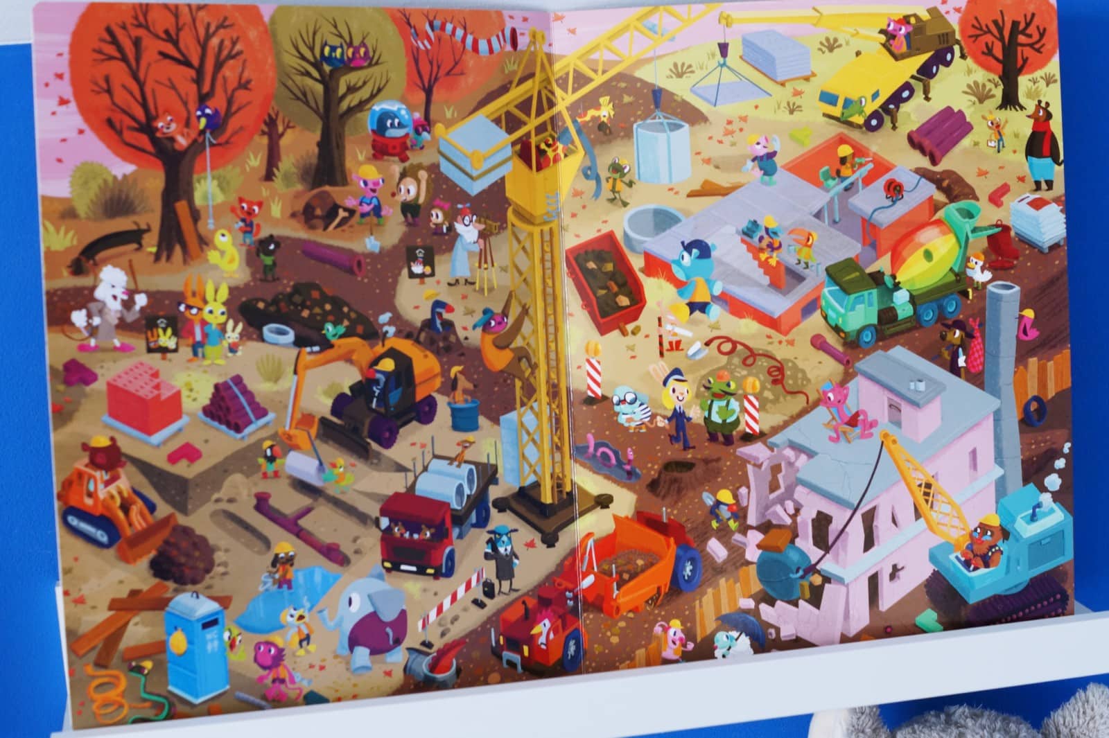 4 pierwsze pozycje to wielkoformatowe książki obrazkowe. Uwielbiam ten rodzaj panoramicznych książeczek dla najmłodszych. Każda rozkładówka pełna jest barwnych postaci, niezwykłych przygód i całej masy szczególików. Każdego wieczoru ta sama bajka może przed dzieckiem otwierać nową historię, odkrywać nowe sytuacje i rozpoznawać nowe pojazdy, których w książeczkach znajdziemy cały przekrój. Sceny z książeczek autorstwa Stephana Lomp’a mają miejsce w miasteczku Sprężyna Zdrój. Znajdziemy tam wielobarwne postaci, których przygody możemy śledzić przez kolejne strony książeczki. Listonosz Pandaleki, Kotek Urlopek, Profesor Śmigiełko, Borys Poważka musicie koniecznie poznać ich bliżej.