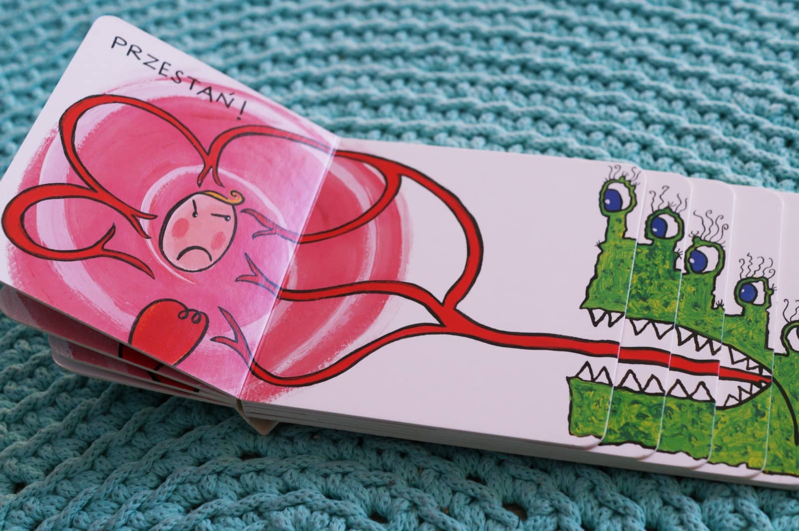 W naszej biblioteczce znajduje się kilka książeczek, których nie da się przeczytać ot tak. Trzeba się nieco w nie zaangażować. Pokazać język, zrobić głupią minę, modelować głos, gestykulować, śmiać się na cały głos i znów zrobić głupią minę. I wiecie jak na to wszystko reaguje nasz Antek? Chichra się jakby go ktoś gilgotał po piętach.