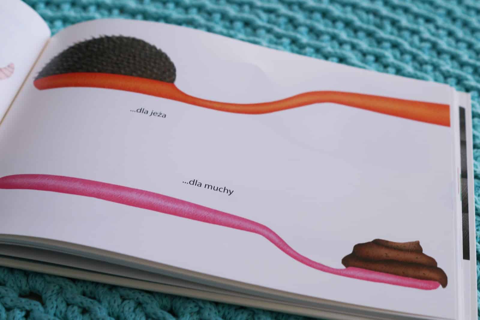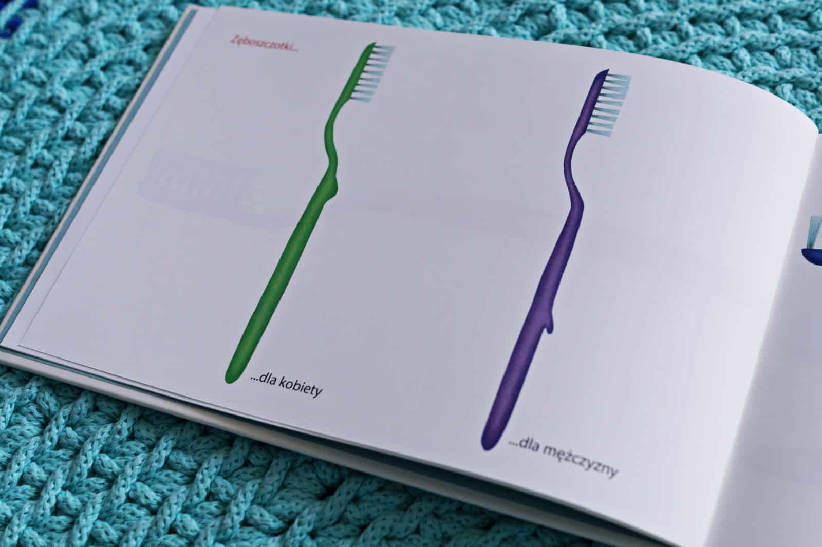 Na koniec książeczka, która początkowo wcale nie wydawała mi się ciekawa. Dopiero po chwili zrozumiałam jej sens i spostrzegłam, że to całkiem zabawna, ale też edukacyjna pozycja, która motywuje do logicznego myślenia. Autorzy w zabawny sposób przy pomocy zęboszczotek skupiają się na skojarzeniach, które dotyczą zawodów, zwierząt… Można puścić wodze fantazji i pomyśleć jak wyglądałyby zęboszczotki naszych bliskich lub naszego malucha.