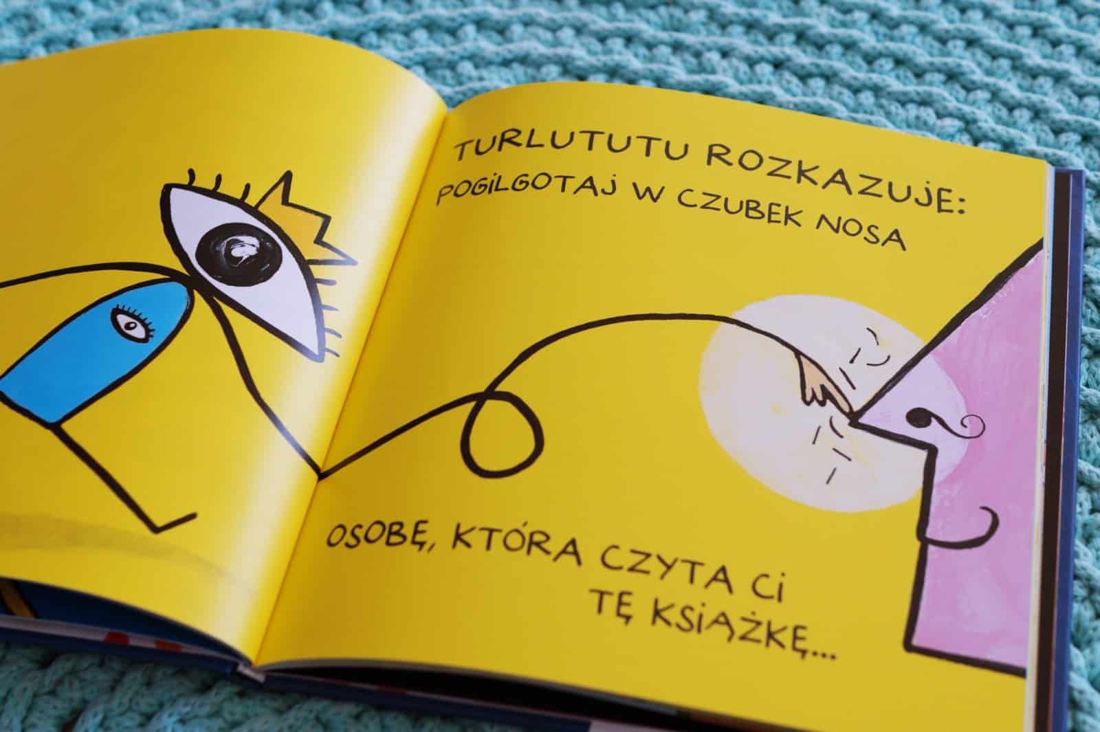 A jeśli mowa już o autorze książeczek Herve Tullet, to nie mogłabym nie wspomnieć o przygodach Turlututu. Ta seria z pewnością nie jest dla drętwych i poważnych rodziców :). To książeczki, w których idzie się na całość w wariactwach. Wygłupia się i czytający i słuchający.