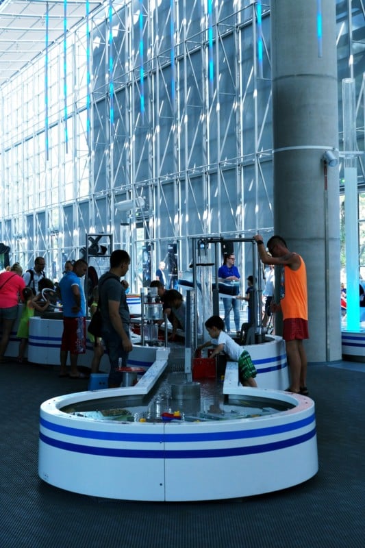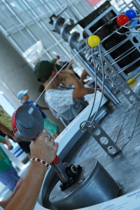 Centrum Nauki Experyment podzielone jest na wystawy tematyczne: Hydroświat, Drzewo Życia, Niewidoczne Siły, Człowiek, Wynalazki Leonarda Da Vinci. Przy poszczególnych stanowiskach mali odkrywcy mogą zrozumieć działanie tamy, śluzy, doświadczyć trzęsienia ziemi, przekonają się jak przy użyciu praw fizyki można podnieść jedną ręką auto…. Stanowisk jest naprawdę bardzo dużo, myślę, że każdy znajdzie coś dla siebie. Nam najbardziej przypadły do gustu wystawy ze złudzeniami optycznymi:). Myślę, że warte uwagi jest również stanowisko z Wirtualnym Światem Wynalazków Leonarda da Vinci. Ja dopiero po wyjściu zorientowałam się, że należało wcześniej ściągnąć specjalną aplikację na telefon, aby móc oglądać wirtualne eksponaty. TUTAJ znajdziecie wszystkie potrzebne informacje.