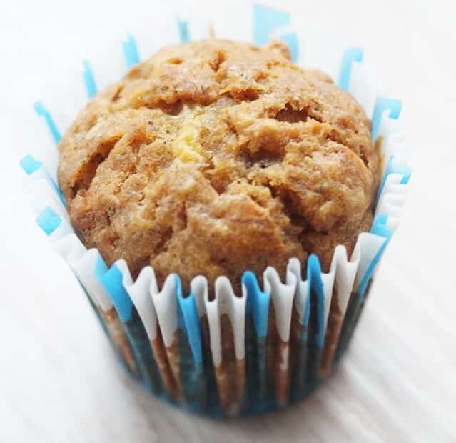 Rozgniatam banany widelcem i dodaję startą na tarce na dużych oczkach marchewkę i rozpuszczone masło/olej oraz jajko i wszystko mieszam. Następnie dodaję cynamon i ziarenka wanilii. Na koniec dołączam przesianą mąkę z sodą. Mieszam, aby wszystko ładnie się połączyło. Konsystencja powinna być dosyć gęsta, w razie potrzeby dodaję więcej lub mniej mąki. Napełniam foremki do 3/4 wysokości i wstawiam do piekarnika rozgrzanego do temp. 180 °C na 30 minut.