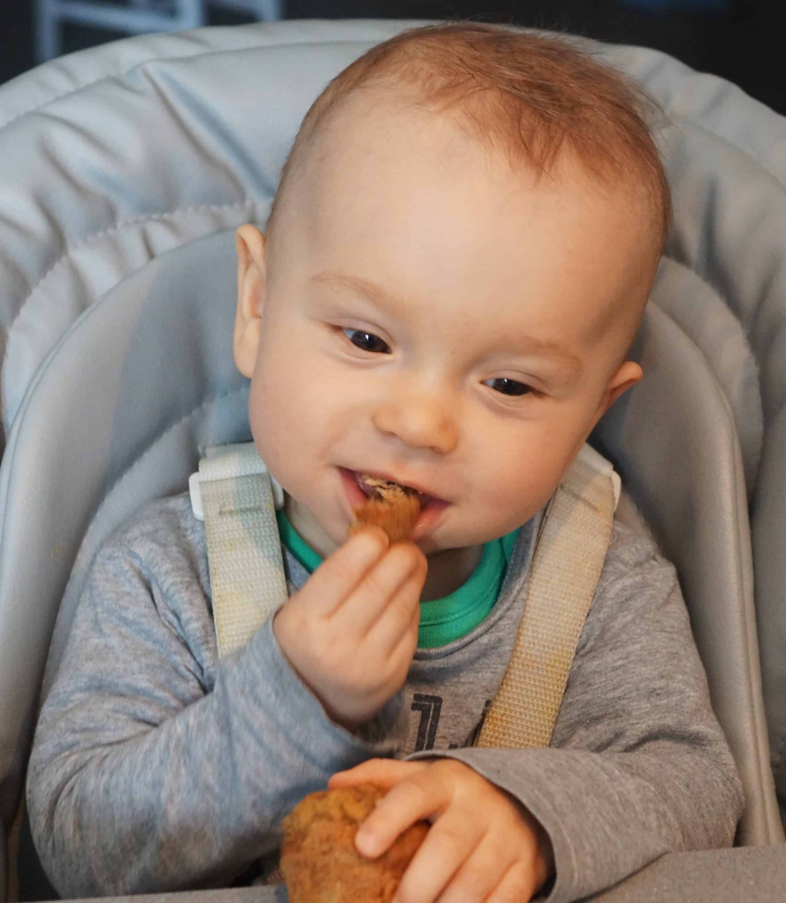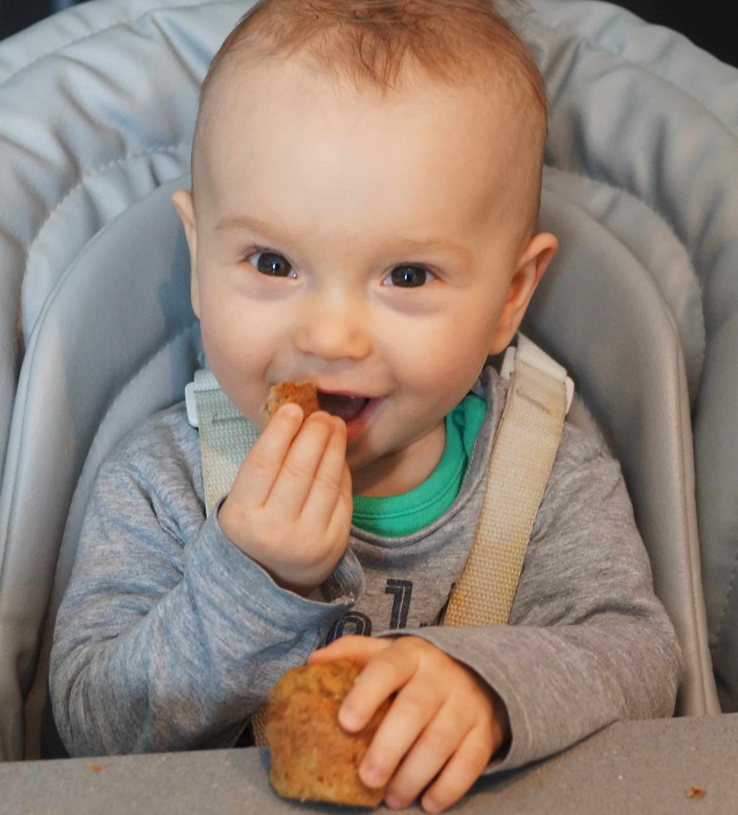 Moje dziecko jest prawdziwym muffinkożercą:) I bardzo dobrze, bo muffinki świetnie sprawdzają się na wyjazdach lub dalszych spacerkach. I szczerze powiem, że nigdy nie byłam mistrzynią w ich pieczeniu. Albo nie rosły albo jakimś cudem wychodziły mi zakalce. Na szczęście doszłam do perfekcji. Potrafię je robić w ekspresowym tempie widelcem, kiedy Antek śpi:) Zazwyczaj zanim wstanie już wystudzone na niego czekają! Muffinki bananowo-marchewkowe są wyjątkowe, ponieważ banan nadaje słodyczy, miękkości i wilgotności. Drugi dodatek może być dowolny, może to być jabłko, gruszka ja tym razem dodałam marchewkę. Te babeczki są idealne dla małych łapek:) Muffinek nie dosładzam, są naprawdę słodkie. Najlepszym dowodem na to jest fakt, że zjada je Antkowy tatko, a kto go zna wie jakim jest słodyczomaniakiem:)))