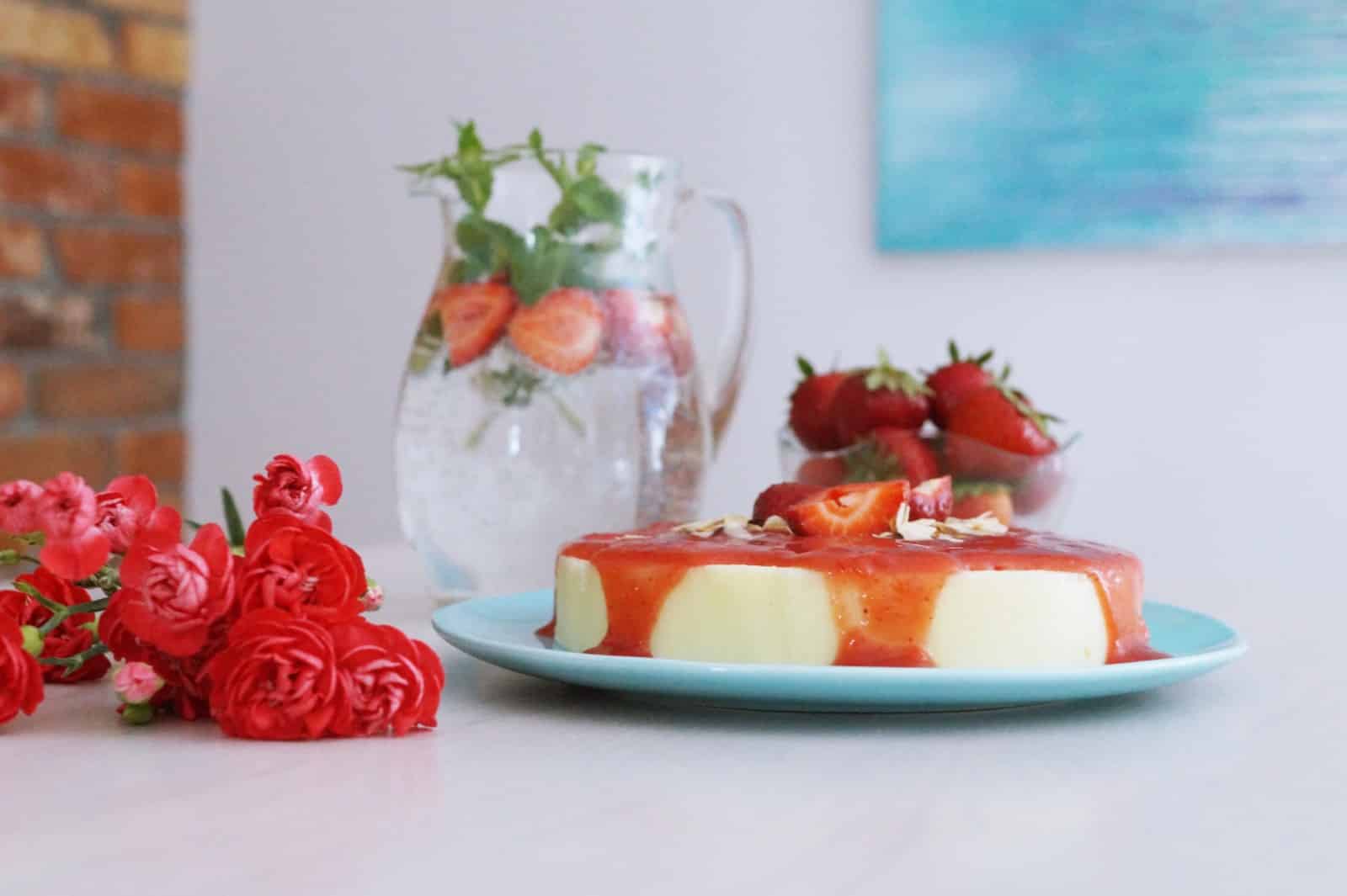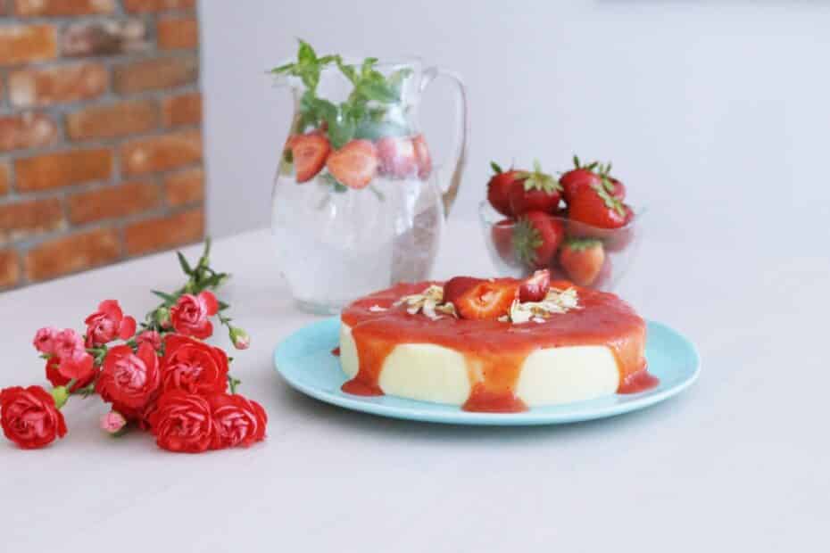 Mamy sezon na truskawki, więc musi być sernik na zimno z truskawkami. Wprost idealny na upalne dni! Ten sernik jest jednak nieco inny. Nie ma w nim sera, ani innego składnika zawierającego mleko. Także, mogą go jeść bez obaw wszystkie osoby, które musiały lub chciały wyeliminować mleko krowie ze swojej diety. To ciasto jest bardzo lekkie i łatwe w zrobieniu. Myślę, że posmakuje wszystkim wielbicielom serników na zimno. Przepis na sernik bez sera z truskawkami znajdziecie poniżej 🙂