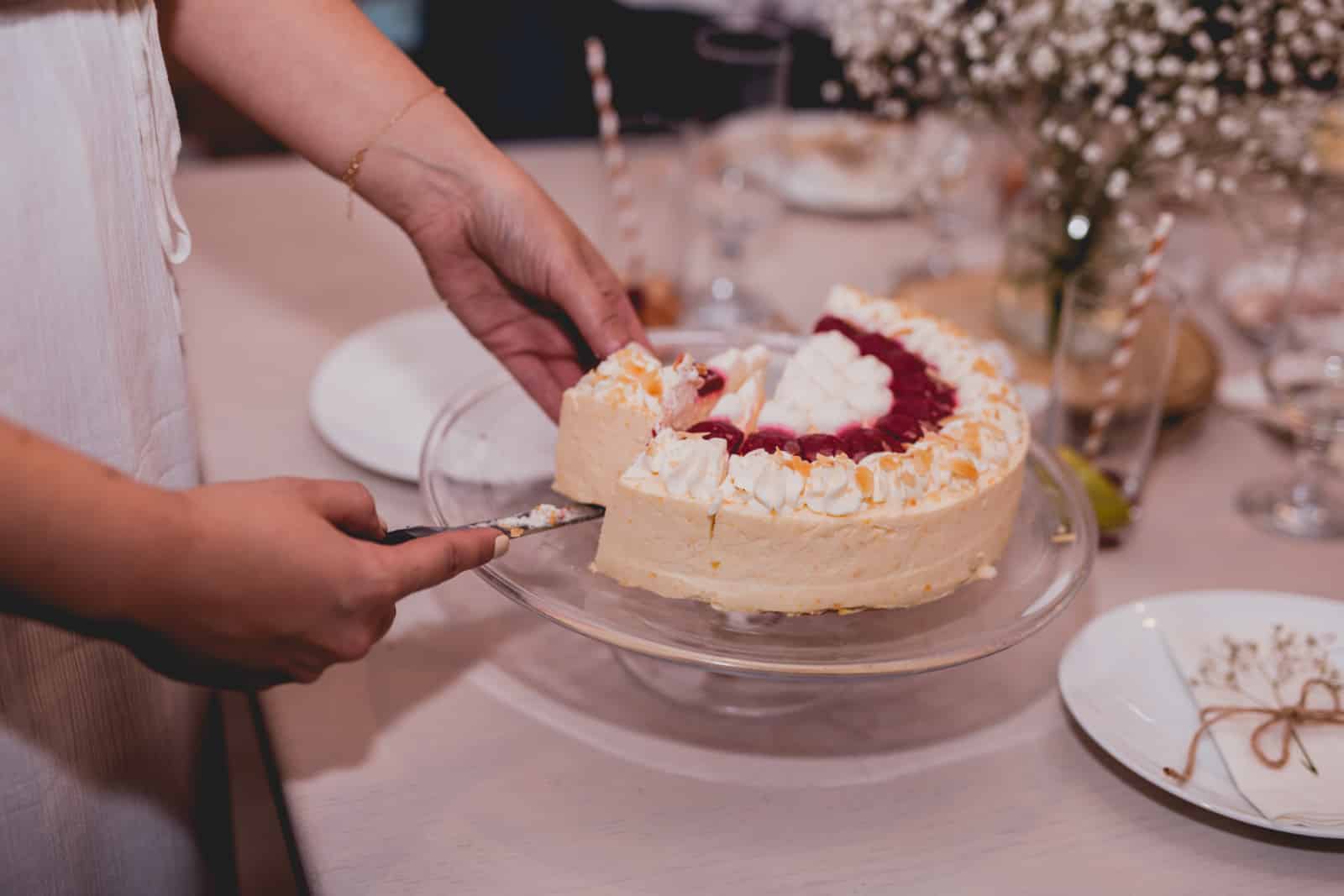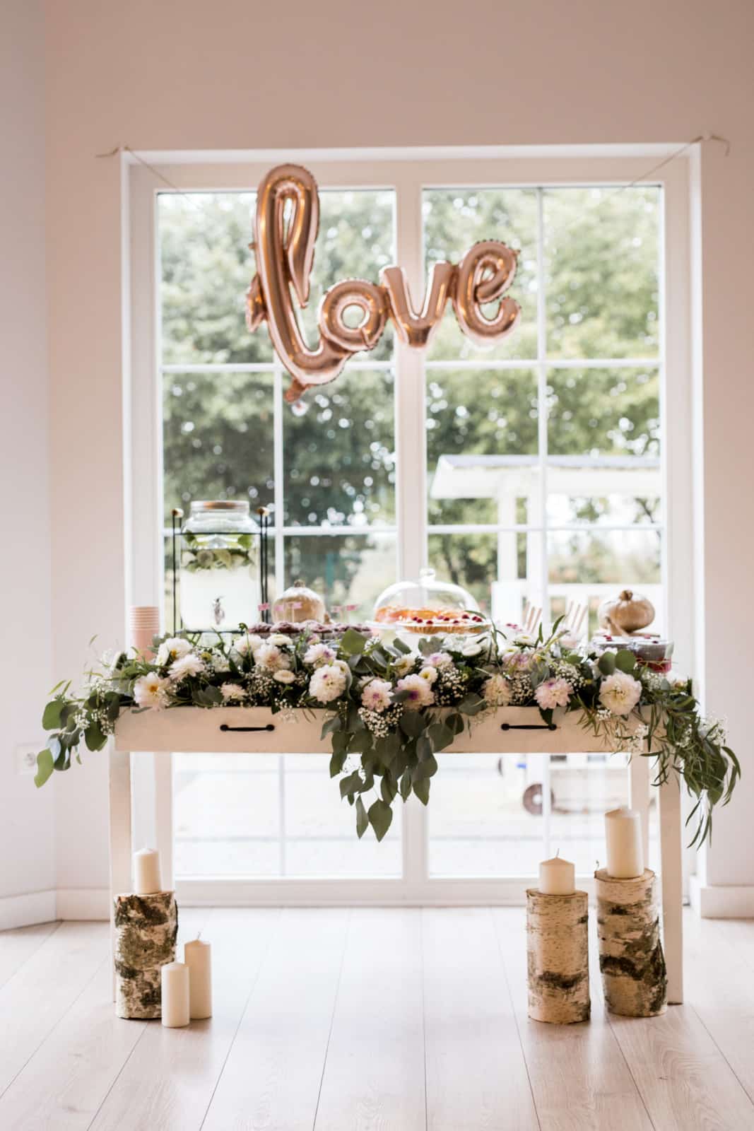 W ostatnim momencie pomyślałyśmy, że bardzo miłym akcentem byłby również tort. Nie miałyśmy już czasu na upieczenie takiego domowej roboty, a i z naszymi umiejętnościami byłby problem , a torty z cukierni ostatnio bardzo mocno mnie rozczarowują, dlatego skorzystałyśmy z mojego pewniaka, tortu lodowego Conditorei Coppenrath Wiese o smaku brzoskwiniowym. Kosztuje nie całe 40 zł, a zawsze wszystkim niesamowicie smakuje, także jeśli będziecie kiedyś w kropce, polecam Wam bez wahania takie właśnie rozwiązanie. Siostra Asi przygotowała jeszcze mini girlandę na tort, dzięki czemu idealnie wpasował się w klimat.