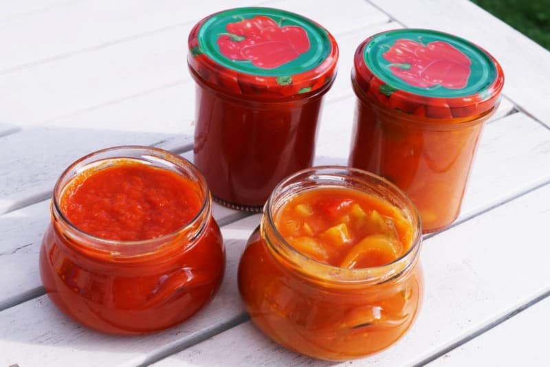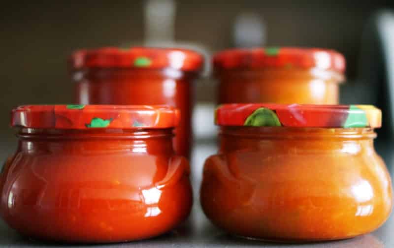 Lubię przetwory, które nie są jedynie dodatkiem do obiadu, a tworzą jego bazę i tym samym podsuwają nam jakiś pomysł. Dwa sosy na bazie papryki, bardzo odmienne w smaku,  pozwolą Wam stworzyć pyszne, aromatyczne, wyraziste w smaku dania. Od kilku lat szalejemy za sosem paprykowym (ten ciemniejszy), który bardzo często wykorzystujemy do pizzy. Drugi słoiczek to sos paprykowy słodko-kwaśny, który rewelacyjnie smakuje z mięsem mielonym, ale też z kawałeczkami kurczaka.