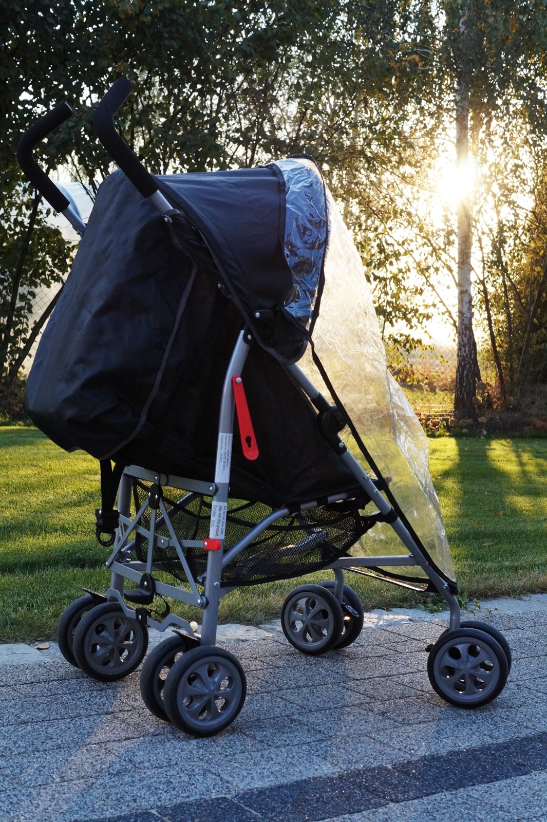 Kiedy ją rozpakowałam stwierdziłam, że jak na swoją cenę jest wręcz wykonana za dobrze. A konurencję miała ogromną, bo jestem zakochana w swoim Baby Joggerze City Elite i najchętniej zabrałabym ten wózek jednak jest o wiele za duży. Do spacerówki dołączona była jeszcze jeszcze folia przeciw deszczowa. Sama taka folia w przypadku Baby Joggera to koszt ok. 100zł, a tutaj za 150 mam wózek i folię:)))).