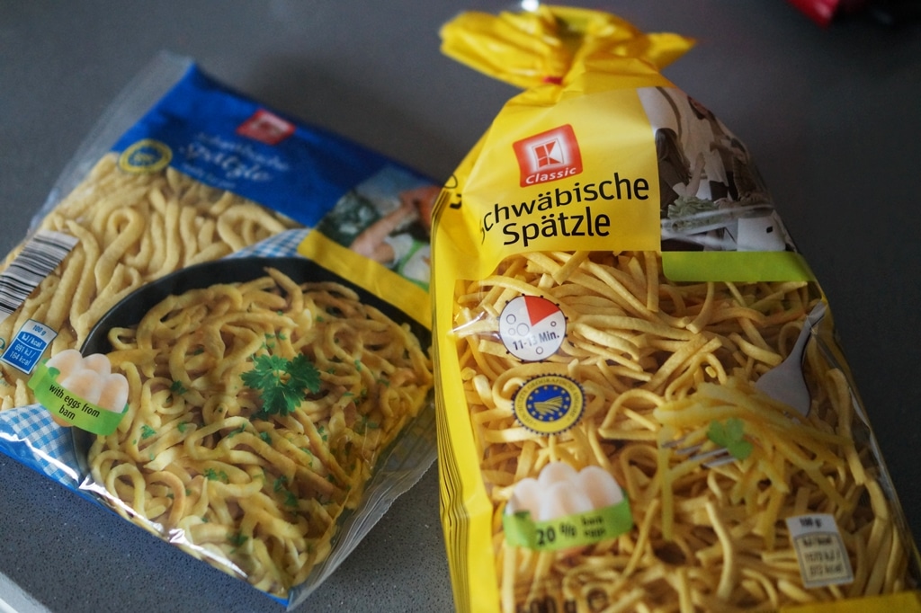 Swoje makiełki przyrządzam z makaronem typu Spätzle, wyglądającym jak grube lane kluseczki. Dostaniecie je praktycznie w każdym większym supermarkecie. Wypatrujcie ich na dziale z makaronami lub w lodówkach obok parowańców :).