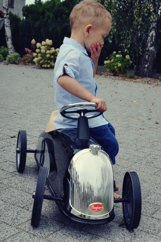 A zalety, czy to autko ma w ogóle jakieś zalety? A ma. Moim zdaniem ono jest po prostu ładne i pasuje nam do wystroju:D I tym sposobem kupiliśmy sobie najdroższą dekorację w naszym domu:) Myślę też, że Baghera powinna być na wyposażeniu każdego zakładu fotograficznego, który zajmuje się fotografią dziecięcą.