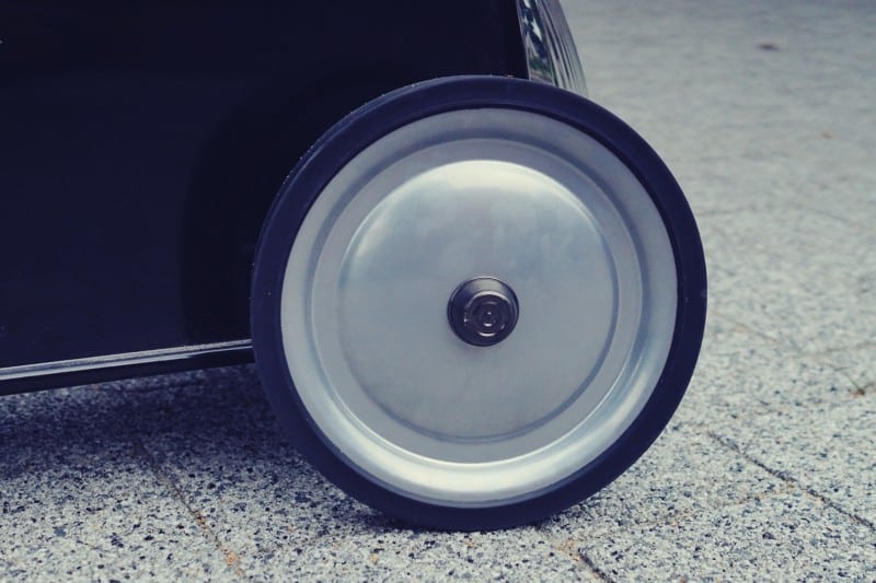 ⇒ CIĘŻAR to autko jest całkowicie metalowe, więc ten ciężar skądś się bierze. W opisie producent napisał, że jeździk przeznaczony jest dla dzieci powyżej 2 roku życia i naprawdę mniejsze dziecko może mieć trudności z zadarciem nogi żeby w ogóle wsiąść. Z zejściem również są problemy, ponieważ wszystkim mniejszym dzieciom u nas blokowała się noga między kołem, a korpusem.