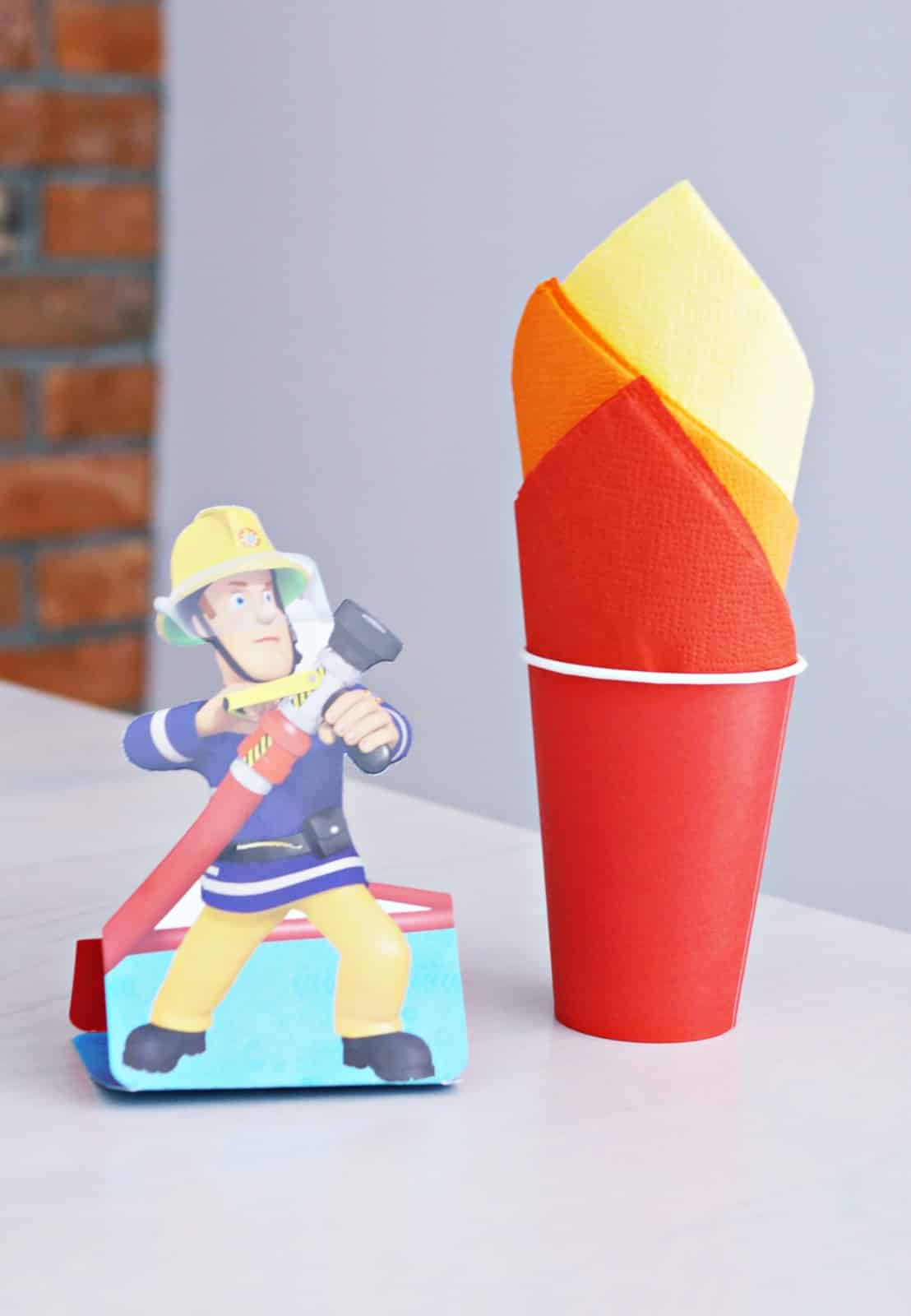 W tym wpisie zdradzę Wam co wybrałam ( choć nie wszystko, kilka rzeczy pokażę dopiero w poście urodzinowym) i jak z rzeczy, które i tak musiałabym kupić, zrobię łatwe i szybkie dekoracje. Wystarczyło świadomie podejść do tematu i zwrócić uwagę np. na kolory. I tak wybierając serwetki wyszukałam takie, aby móc stworzyć z nich coś na wzór płomieni. Dodatkowo zaproszenia, które dobrałam, są w postaci strażaka gaszącego pożar. Część z tych zaproszeń wykorzystam zgodnie z ich przeznaczeniem, jednak nie potrzebuję ich wszystkich. Reszta małych figurek wyląduje na stole, gasząc serwetkowy pożar :). W skład moich zakupów weszły jeszcze oczywiście talerzyki, kubeczki, słomki czy balony, mam nadzieję, że pomogą mi one stworzyć spójny i wesoły nastrój w dniu przyjęcia urodzinowego naszego Antka!