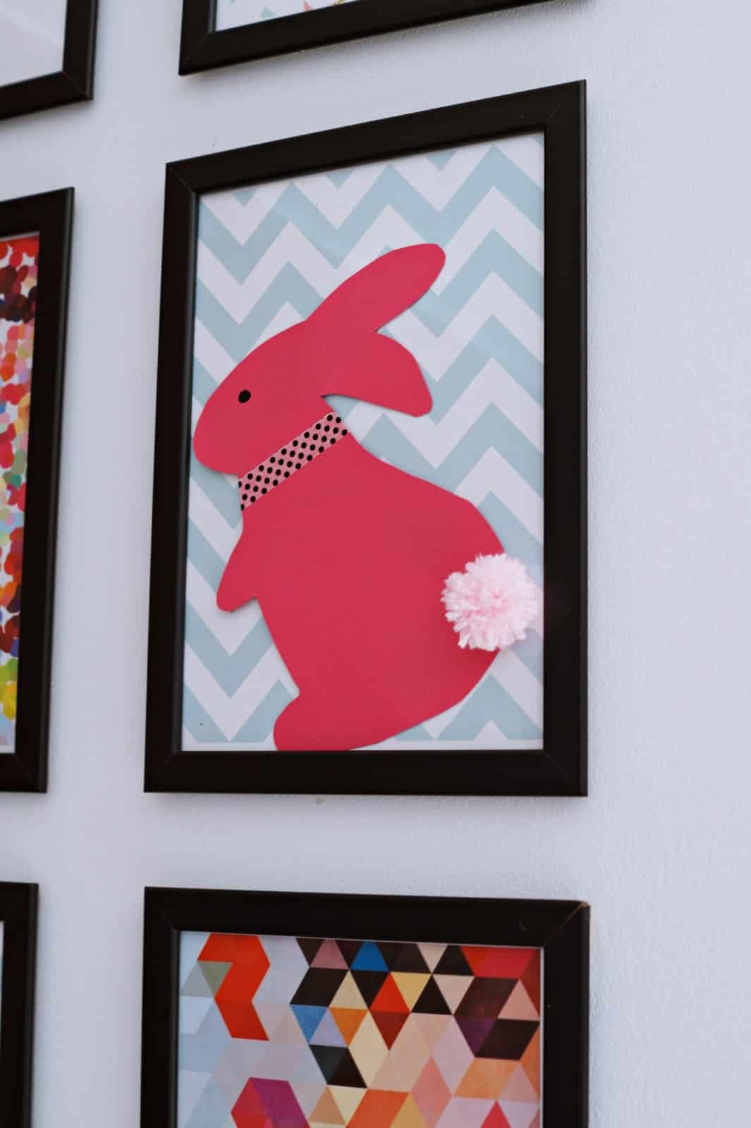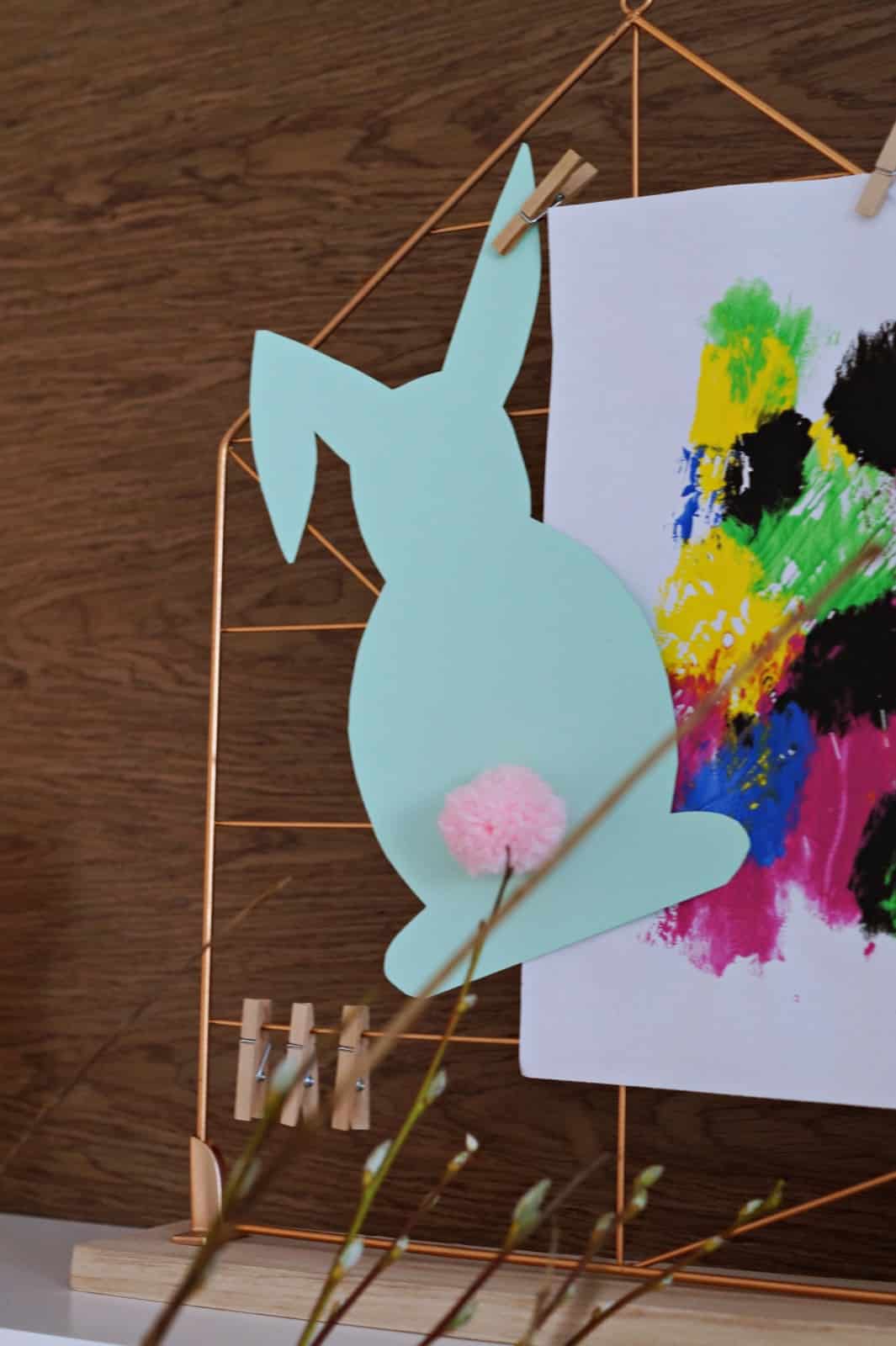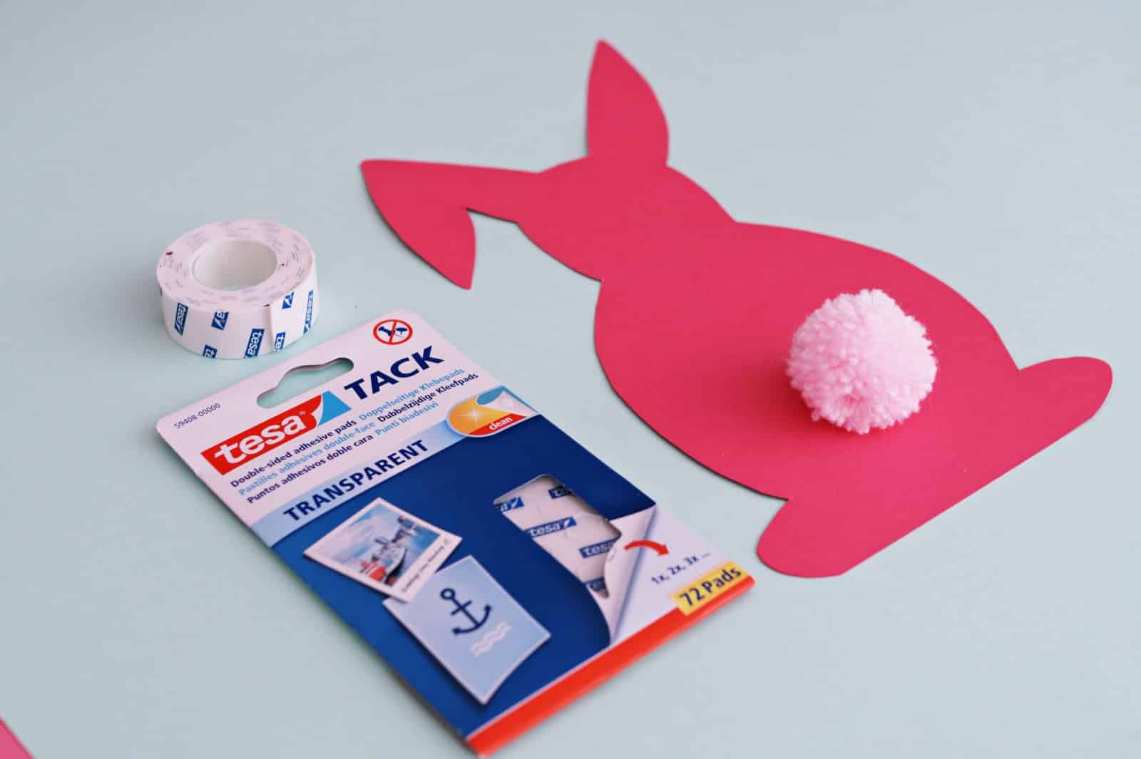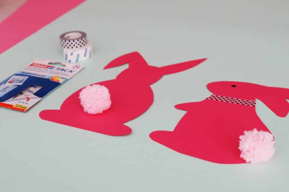 Wydrukuj szablony zajączków, ewentualnie jeśli potrafisz możesz namalować je samodzielnie ( to niestety wykracza już poza moje możliwości).Wytnij odpowiednią ilość zajączków, tak aby odpowiadała ilości literek w haśle. U mnie jest ich 11. Przymocuj ogonki za pomocą taśmy dwustronnej, króliczki możesz też dowolnie udekorować. Na odwrocie napisz jedną literkę z hasła i przyczep plasterki dwustronne Tack Tesa. Radzę użyć właśnie takich delikatnych plasterków, ponieważ z łatwością usuniesz je później z każdej powierzchni. Gotowe zajączki ulokuj w różnych miejscach domu. Ja wybrałam kilka mało oczywistych miejsc i kilka widocznych punktów, tak aby zajączki stanowiły ozdobę.